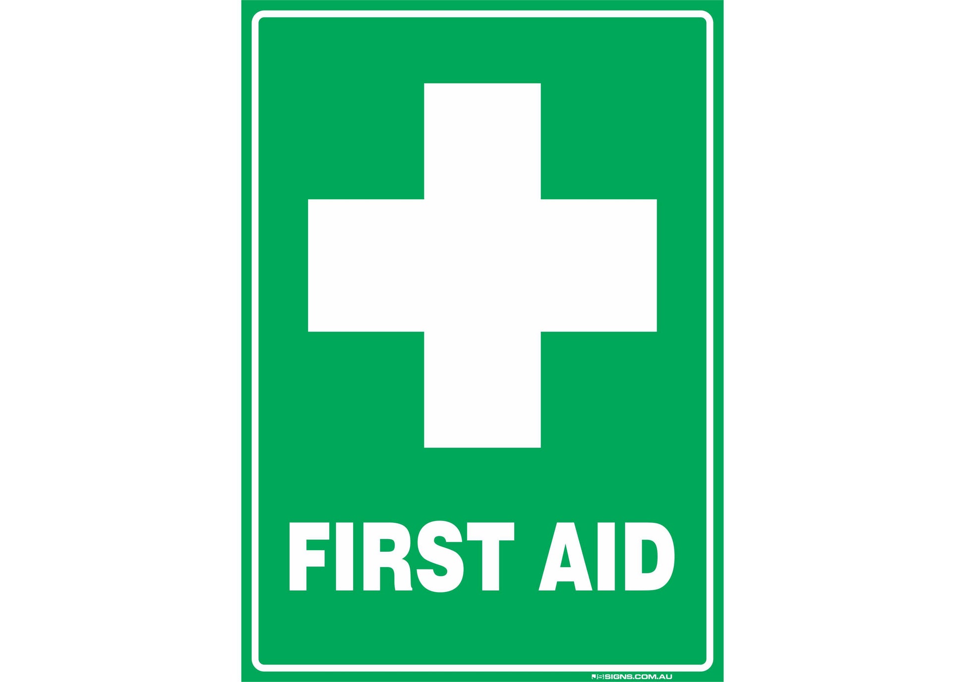 These signs indicate the location of, or direction to emergency related facilities and first aid or safety equipment.